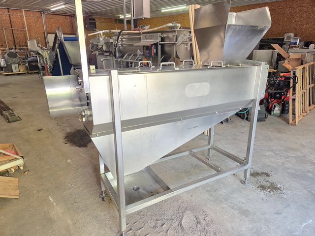 6 Roll Brush Washer with adjustable discharge and catwalk. Last used after peeler for tomatoes.