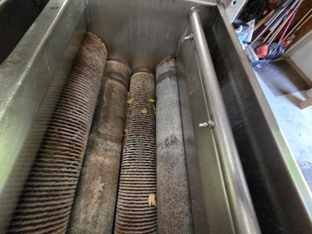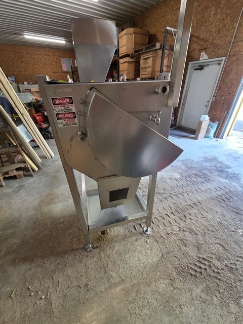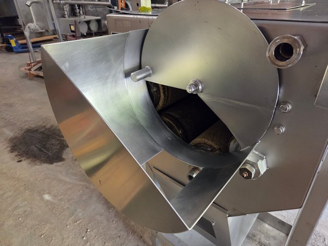 Used Brush Washer or Abrasive peeler. Buyer can replace rolls with what is best for their produce. Used to remove peel or dirt or both from root vegetables. Stainless steel contruction.